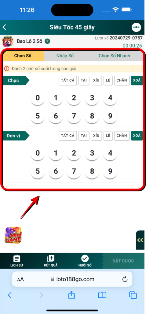 Bước 3 : Điền số muốn đánh, số điểm muốn đánh và cược