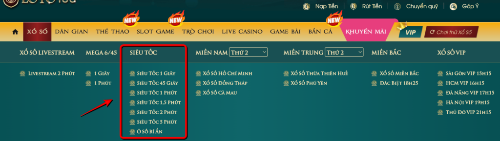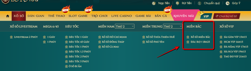 Bước 2 : Chọn loại hình xổ số mà bạn muốn cược